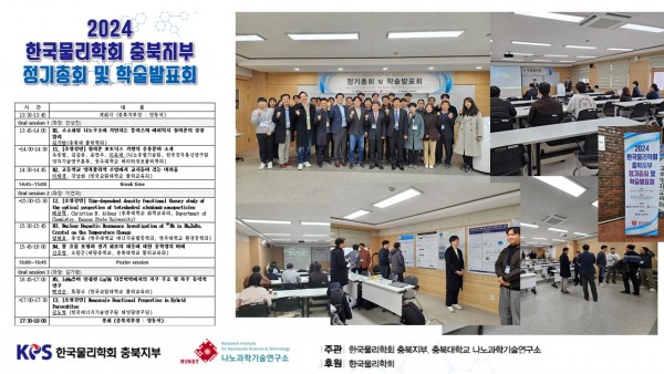 국내학술대회 공동주관_2023 한국물리학회 충북지부 관련링크 목록 본문 국내학술대회 공동주관_2023 한국물리학회 충북지부*2023 한국물리학회 충북지부 정기총회 및 학술발표 1.학회일자: 2024.02.272.학회장소: 충북대학교 사범대학 물리교육과 시청각실(E1-1동 331호) - 주최 : 한국물리학회 충북지부, 충북대학교 나노과학기술연구소 - 후원 : 한국물리학회 목록